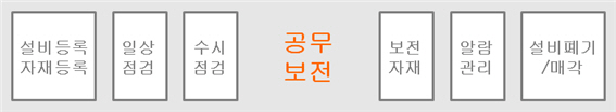 - 공무/보전 팀에서는 생산현장에서 일상점검/ 수시점검 내역을 실시간으로 등록하고 설비이력과 보전자재 내역 등을 확인할 수 있습니다.